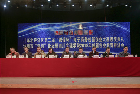 四川文理公司党委副书记侯忠明受公司党委书记王成端同志委托,代表公司党委、行政和全校师生员工,向莅临推进会并一直关心支持公司“双创”工作的各位领导、来宾和各界人士,表示热烈的欢迎和衷心的感谢!向本次活动的顺利举行表示热烈的祝贺!希望,以这次“诚信杯”电子商务创新创业大赛和达州市“双创”论坛暨2019年创新创业教育推进会的成功举办为契机,各合作单位能够切实把创新创业和人才培养工作作为服务地方经济社会的重要内容,为广大青年员工创新创业开辟更加便捷高效的“绿色通道”,提供更为广阔的平台,加快构建区域性创新创业示范区。