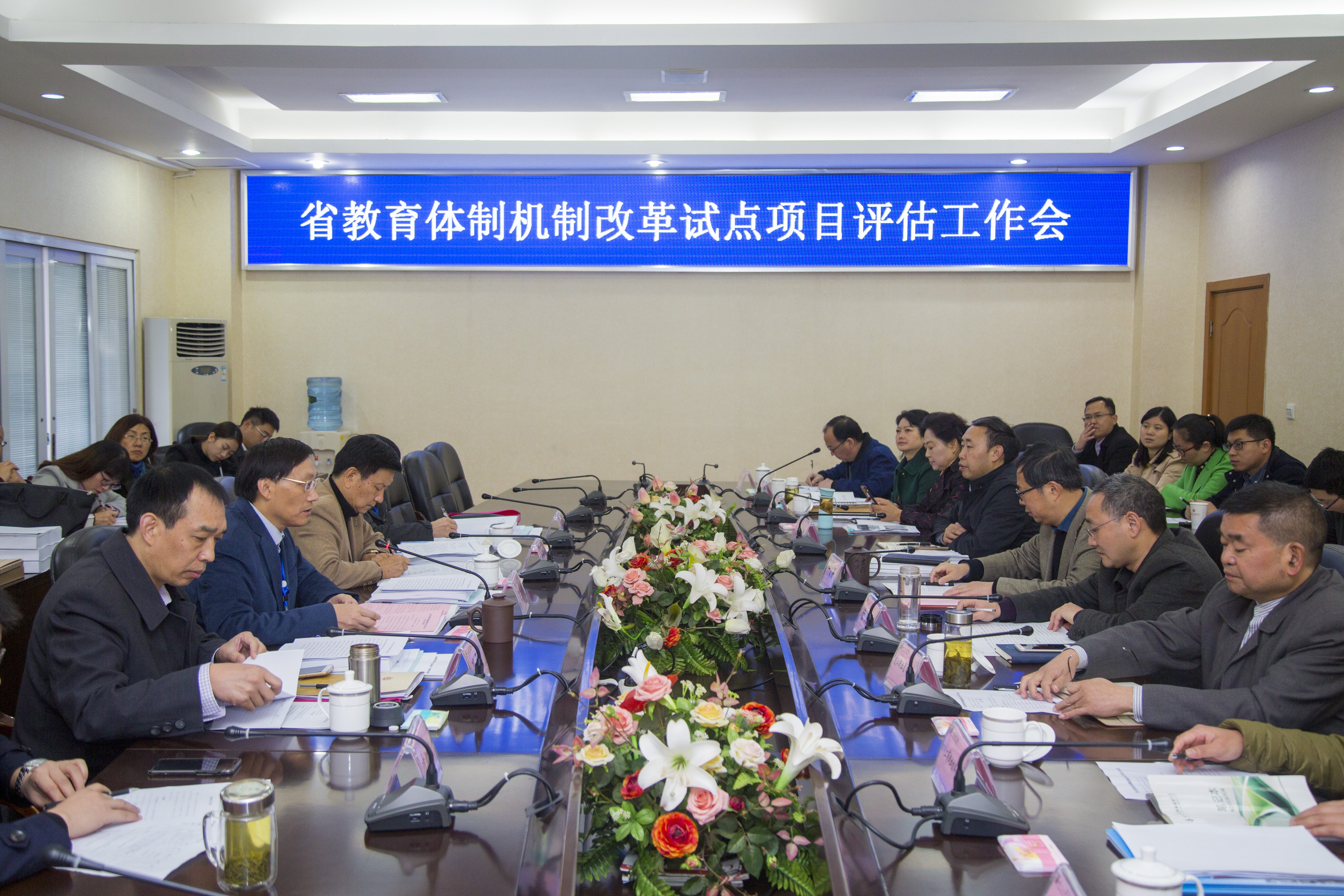 11月13日上午,四川省教育体制机制改革试点项目集中督查评估在太阳成集团tyc234cc行政楼三楼会议室举行。省级教育体制机制改革试点评估专家组以及承担试点项目的四川农业大学、太阳成集团tyc234cc、西南交通大学希望公司、四川工商职业技术公司、四川旅游公司、成都师范大学、内江职业技术公司和达州职业技术公司的相关人员参加了此次会议。担任本次督查评估专家组的成员有四川文理公司党委书记王成端教授、成都信息工程大学银杏酒店管理公司张智勇教授、西华师范大学冯开甫教授、西华师范大学王成光教授。会议分四个阶段,由王成端教授主持。