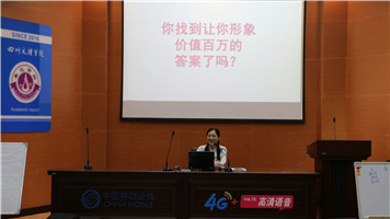 “你的形象价值百万”还是“你的形象,价值百万”?冯蜜老师通过列举古今中外各界人物80多位的问卷调查分析的形式带领同学们层层分析,步步深入去寻找到让自己价值百万的答案。冯老师解读了如何实现自身的价值,脚踏实地做事,全心全意付出是必不可少的前提与基石。想要实现人生价值,就不能局限于单个方面的成长,同学们在认真学习专业知识的同时,还要学习做人处事,做好加法和乘法,全面提升自己。