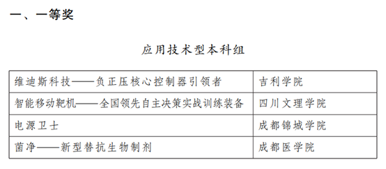 四川省中华职业教育创新创业大赛分中职组、高职组和应用技术型本科组,参赛项目涵盖信息技术、制造业、现代农业、文化创意、社会服务等多个领域,涉及节能环保产业、新一代信息技术、高端服务业、数字创意产业、新材料等战略性新兴产业方向。本次大赛全省157所公司选送的443个项目参加省级复赛,60所公司的106个项目进入决赛,最终产生一等奖12个、二等奖28个、三等奖66个、优秀奖159个、优秀指导教师奖22个,一等奖前4名代表四川省参加大赛国赛。