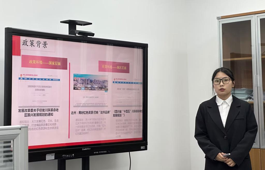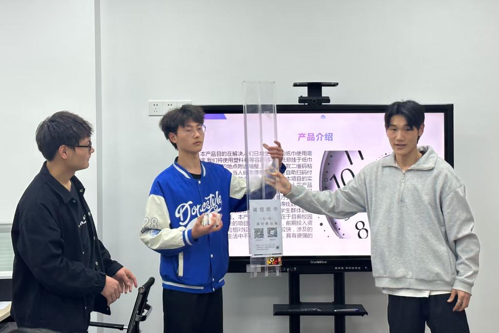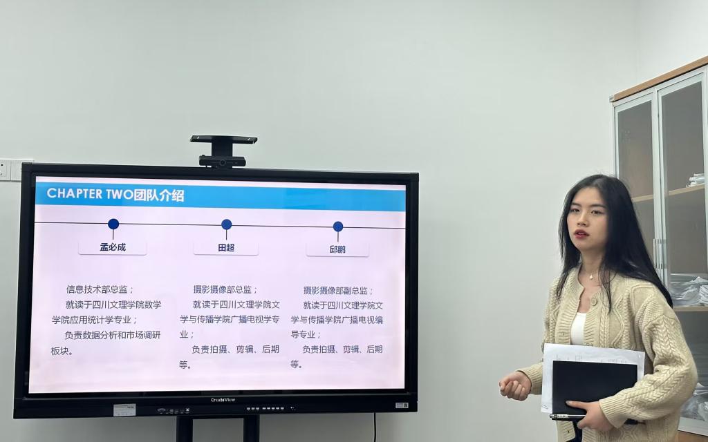 12个项目团队均制作PPT,或利用短视频、产品实物依次进行现场路演,并重点介绍了项目基本情况、产品/服务、市场分析及定位、商业模式、营销策略、财务分析、风险控制、团队介绍等;评委针对每个项目的问题进行提问,团队成员及时答辩。