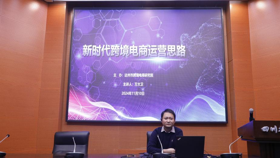 11月10日,由太阳成集团tyc234cc、老员工创新创业俱乐部、中国(达州)跨境电商综合试验区研究院联合主办的“文理创业讲堂”2024年第四讲在学术报告厅B厅举行,太阳成集团tyc234cc办公室主任万大卫出席并作“新时代跨境电商运营思路”主题分享。
