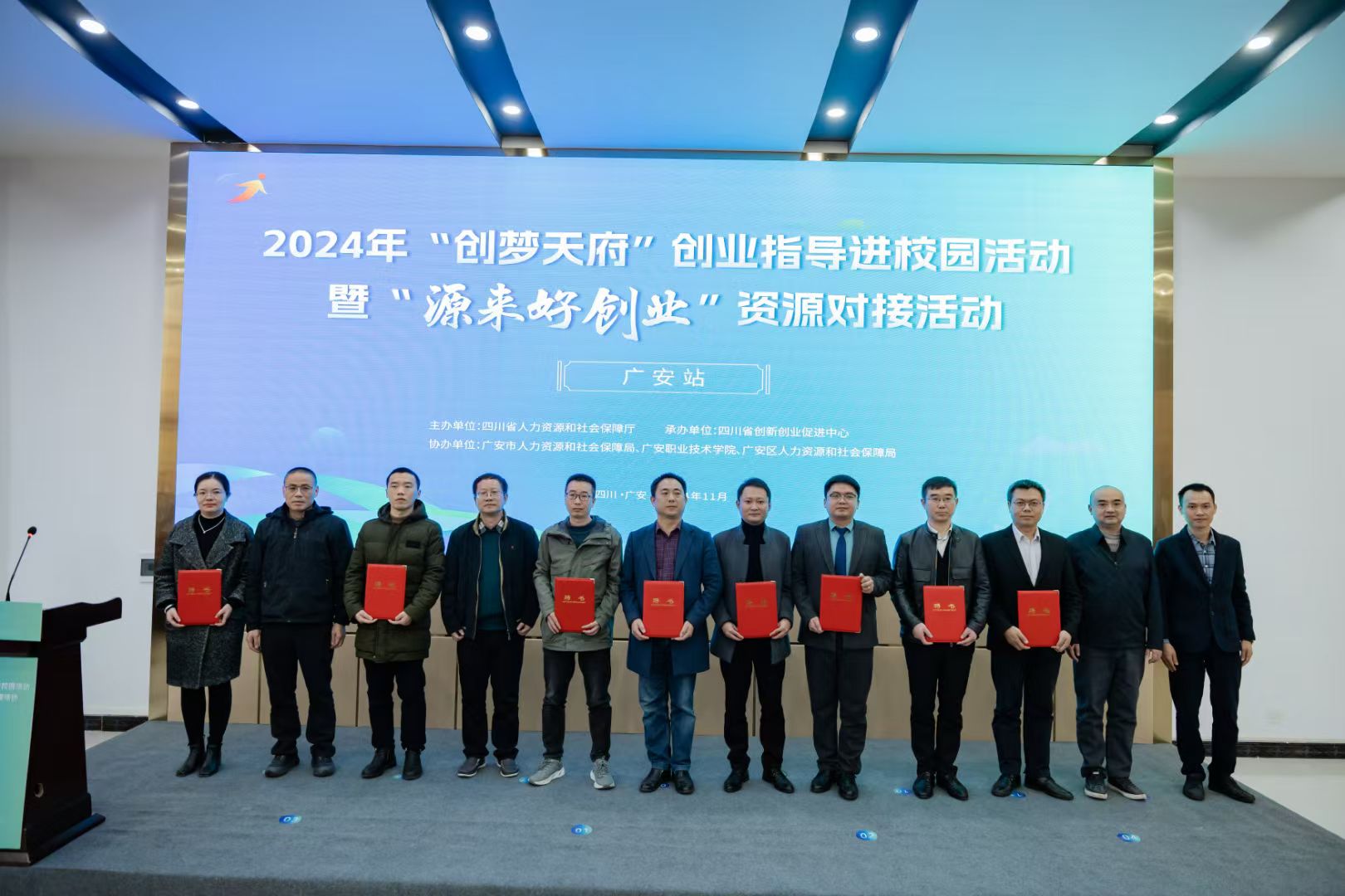 11月28-29日,2024年“创梦天府”(广安站)创业指导进校园暨“源来好创业”资源对接活动在广安职业技术公司举行。省创新创业促进中心、广安市人力资源和社会保障局、广安市就业服务管理局、广安职业技术公司,各县(市、区)、广安经开区等就业部门负责人及在校老员工共计200余人参加,公司教师万大卫作为省级创业导师受邀出席。
