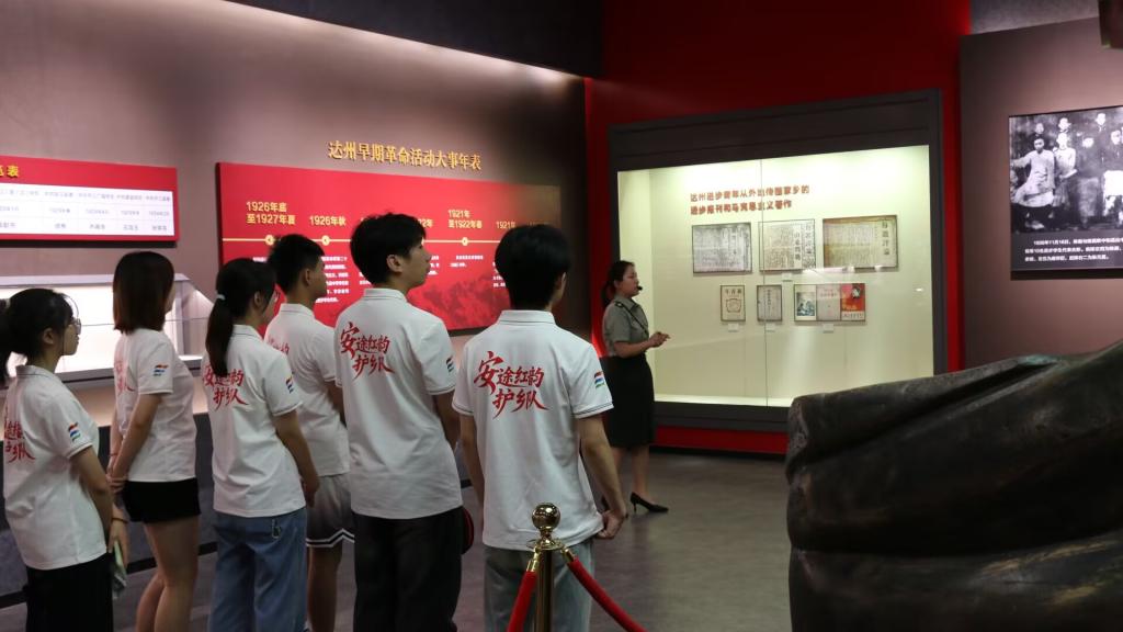 7月2日,实践团转赴庄严肃穆的万源保卫战战史陈列馆,开启“红色传承者”之旅。在革命历史的厚重回响中,队员们凝视着残破的军号、染血的战旗、镌刻标语的石壁,聆听着讲解员深情讲述革命先辈们智勇坚定的英勇事迹。一幕幕复原场景、一件件珍贵文物,无声诉说着信仰的坚韧与牺牲的伟大。这堂沉浸式的“行走的红色思政课”,让队员们深刻感悟到中国共产党人的初心使命历久弥坚。在这红色故里,队员们不仅追溯了革命精神之源,更汲取了砥砺前行的奋进力量,进一步坚定了听党话、跟党走的理想信念。