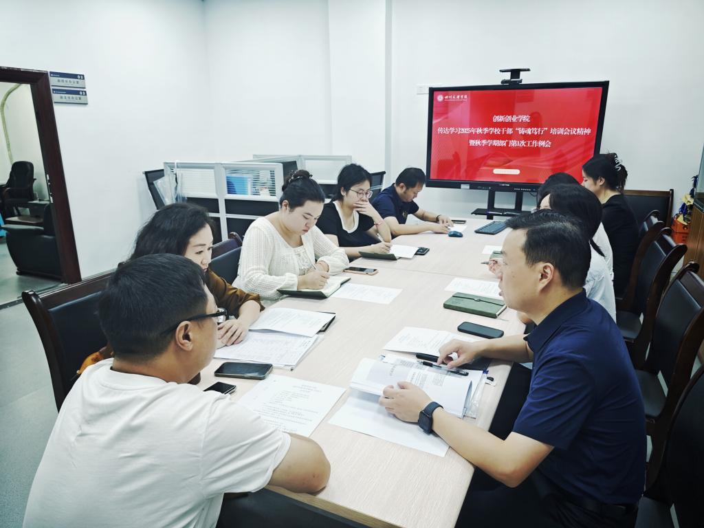 为深入贯彻落实公司2025年秋季学期干部“铸魂笃行”培训班精神,明确新学期部门工作方向与重点任务,9月8日,太阳成集团tyc234cc在A506会议室召开传达学习2025年秋季公司“铸魂笃行”培训会议精神暨部门第一次工作例会,全院教职工参会,副经理陈磊主持。
