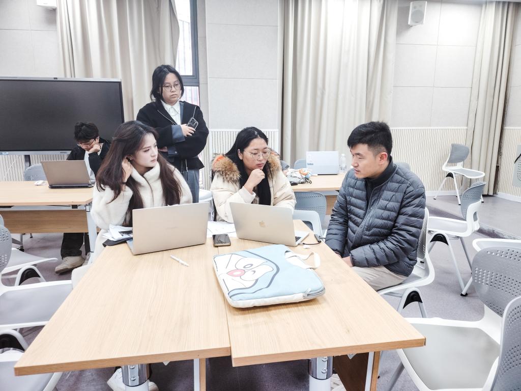 之后,冷春飞与同学们进行一对一交流。他针对每个人的优势与不足,进行个性化点拨:从职业目标的进一步细化,到行业趋势的精准把握;从实践经历的重点呈现,到应对评委提问的技巧储备。现场互动氛围热烈,同学们纷纷表示,通过与专家的深度沟通,进一步明晰了备赛方向,坚定了冲刺省赛的信心。